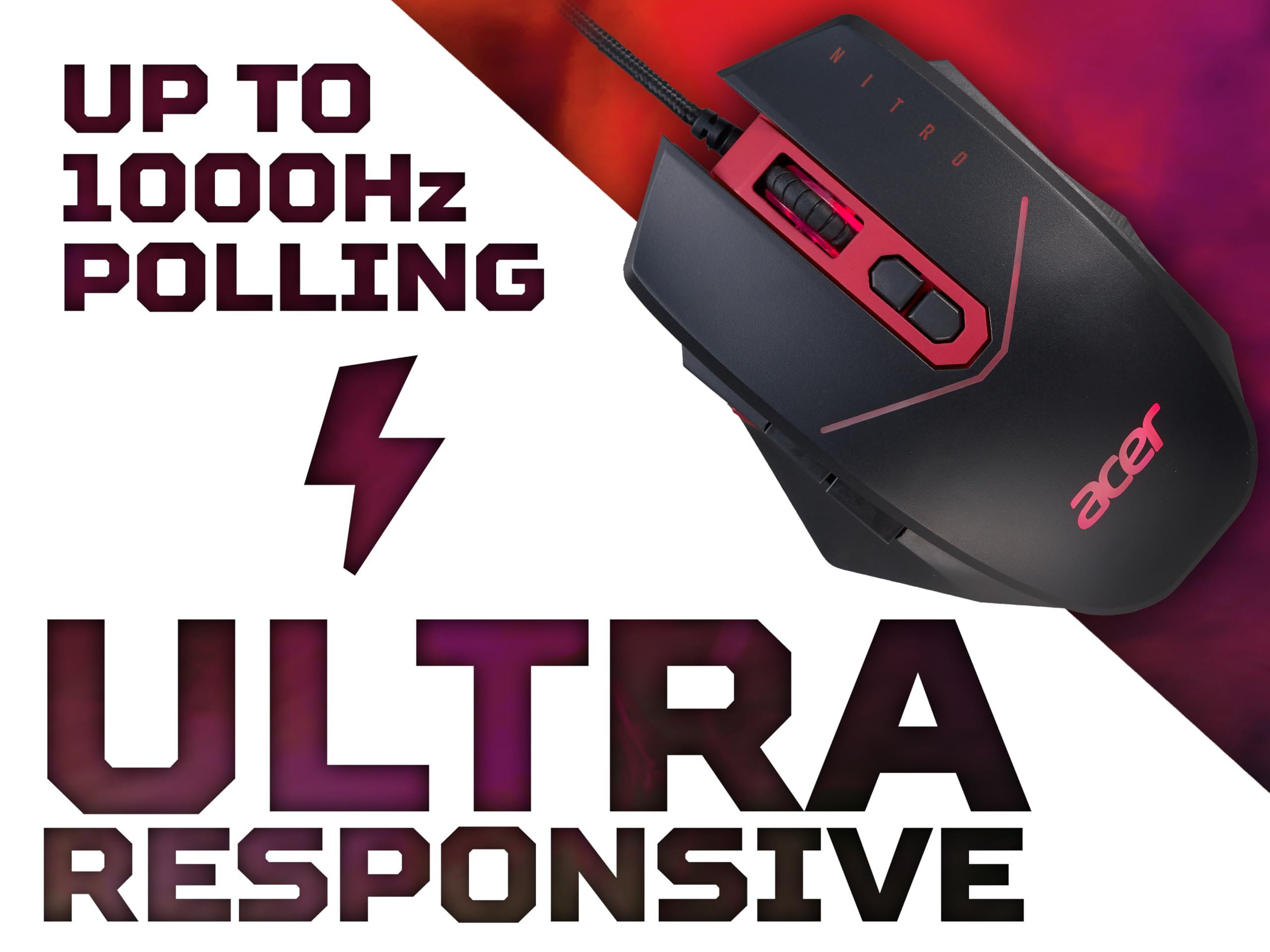 - LIGHTNING FAST: The Nitro gaming mouse’s remarkable 1,000Hz polling rate means that you get near-instant response for lag-free gaming