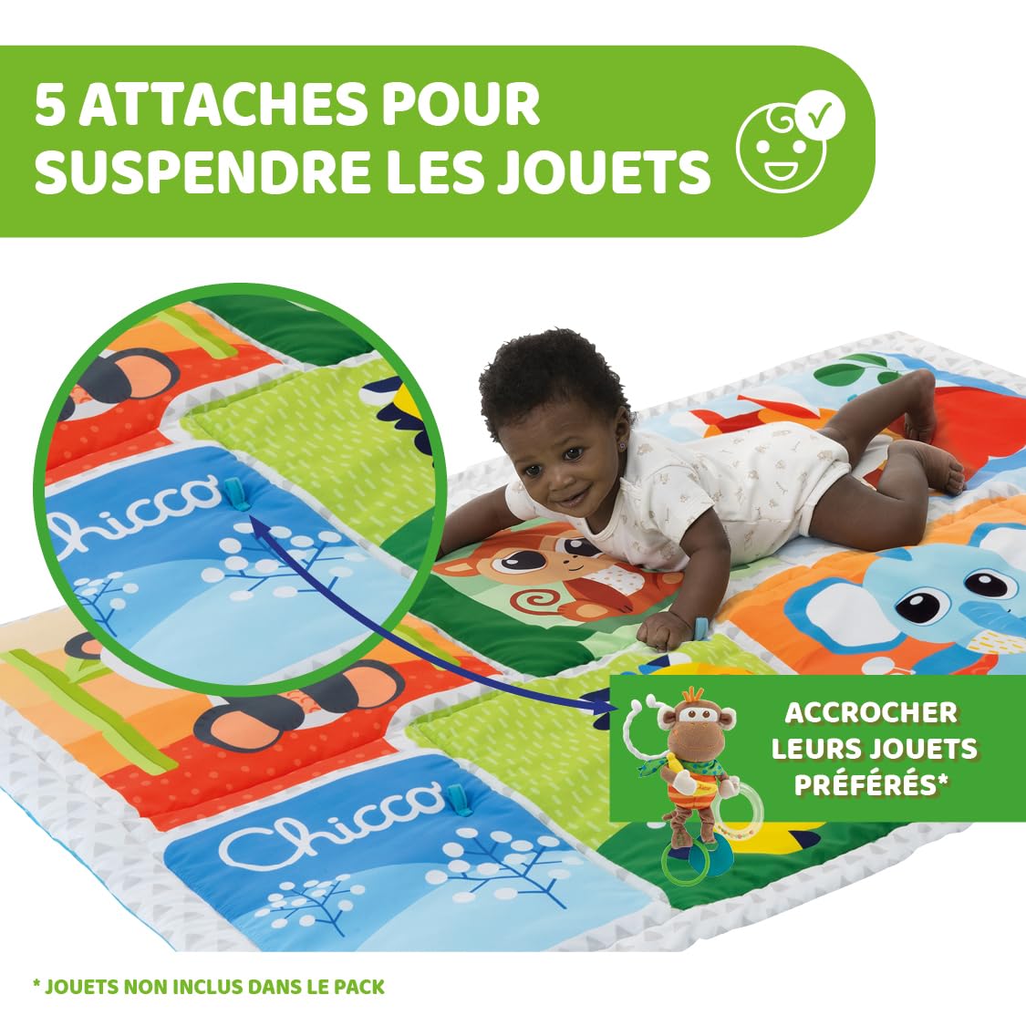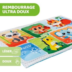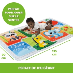 • A play mat with colourful illustrations and soft padding in XXL size (135 x 90 cm) for baby’s first movements and to enlarge the play area• Thanks to the two cords, the blanket can be easily packed up and stowed away • 5 loops for attaching extra play possibilities • Machine washable