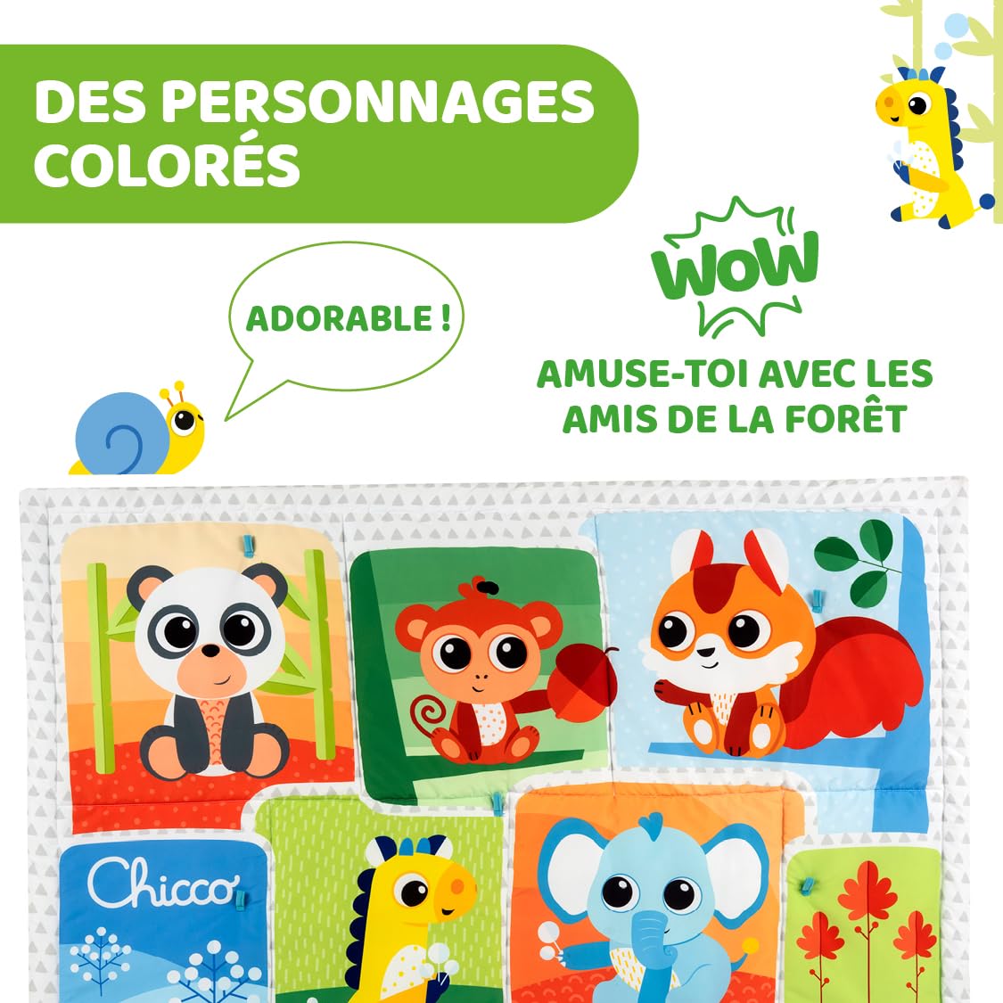 - The cute forest animals will stimulate the child’s curiosity and promote their interaction