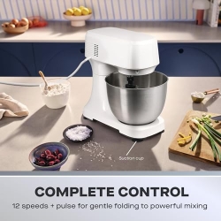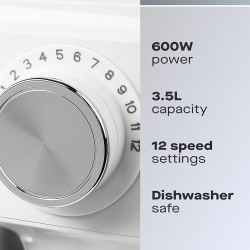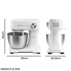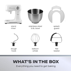 - MULTIFUNCTIONAL – Designed to meet all your baking needs, our stand mixer features a 3.5L capacity bowl and includes a flat beater perfect for cake batter, a balloon whisk that’s ideal for whipping cream, and a dough hook that’s great for kneading bread