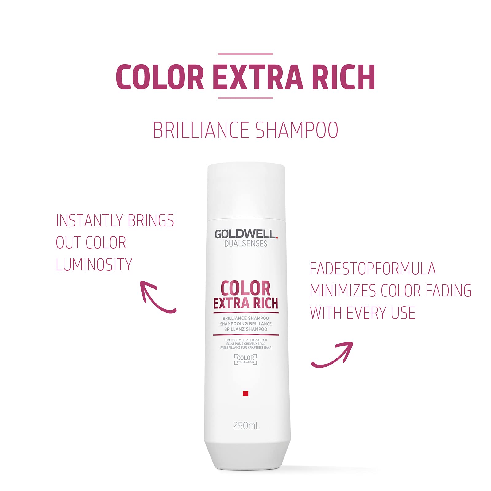 - Experience vibrant, salon-quality hair with Dualsenses Color Extra Rich Shampoo by Goldwell Specifically formulated for colored hair, it preserves color luminosity and minimizes fading Enriched with luminescine technology, it nourishes and hydrates thick to coarse hair, leaving it soft, smooth, and brilliantly vibrant Elevate your hair care routine today!