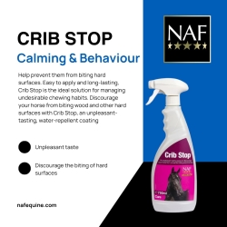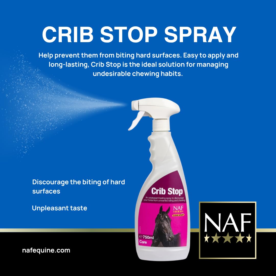 NAF Crib Stop 750ml – Anti-Chew Spray for Horses – Discourages Crib-Biting, Chewing & Gnawing – Bitter-Tasting Formula for Stable Doors, Rugs, Bandages & Wood