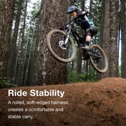 - A rolled, soft-edged harness creates a comfortable and stable carry