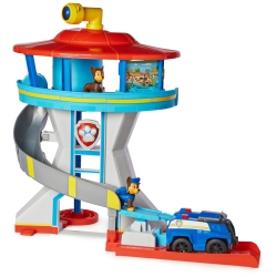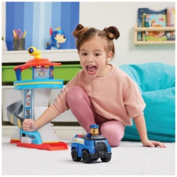 • TOY CAR LAUNCHER: When it’s time for a super-charged rescue, slide Chase down the Lookout Tower slide to hop into Chase’s police cruiser, then slam down on the towers vehicle launcher to burst into action