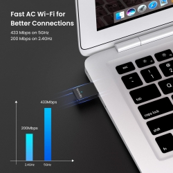 • 【Fast AC650 USB WiFi Adapter for Better Connections】2.4GHz/200Mbps and 5GHz/433Mbps wireless speed effectively avoids radio interference and network congestion, works well for HD Video, gaming, music, Skype, etc.