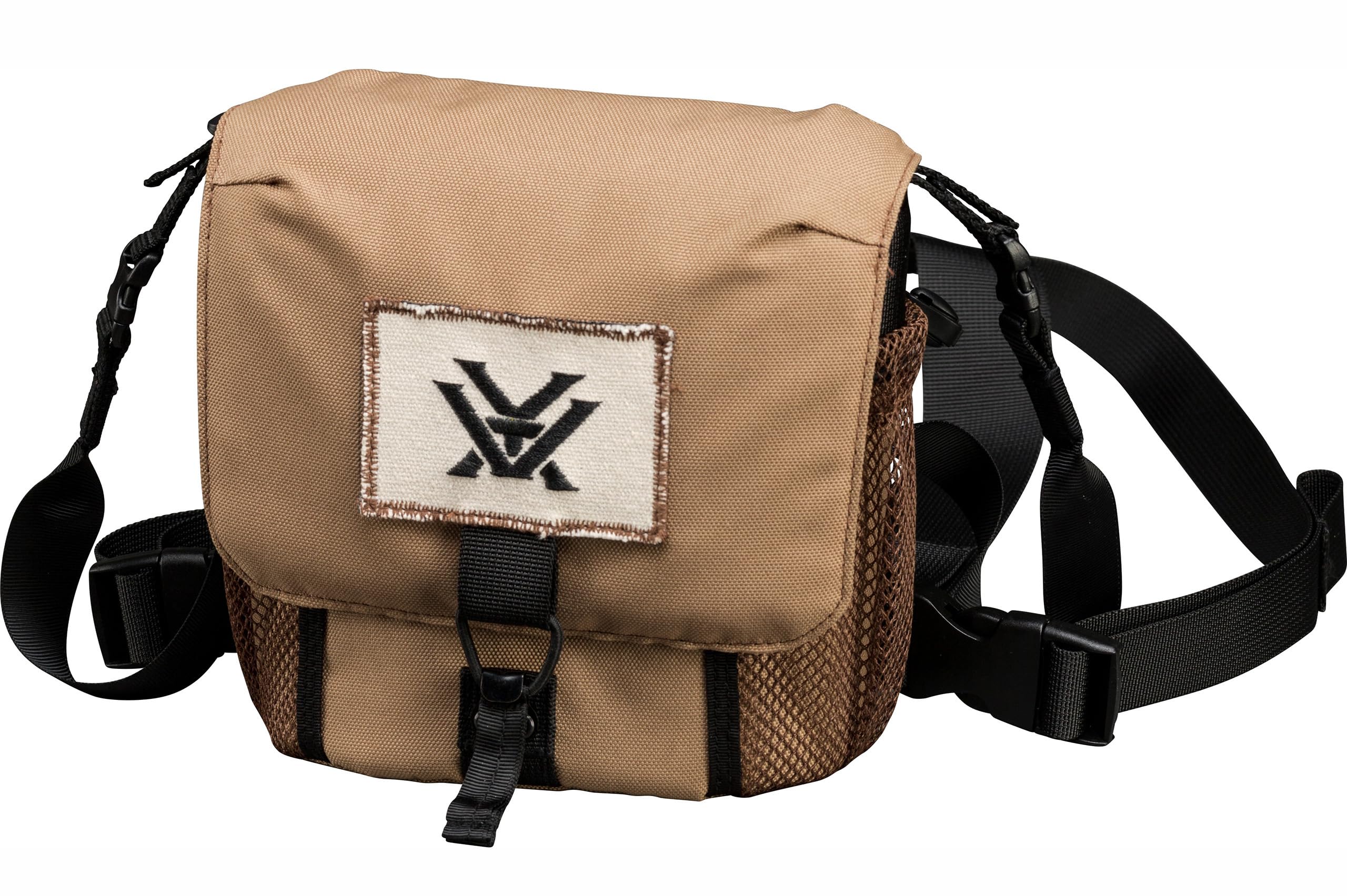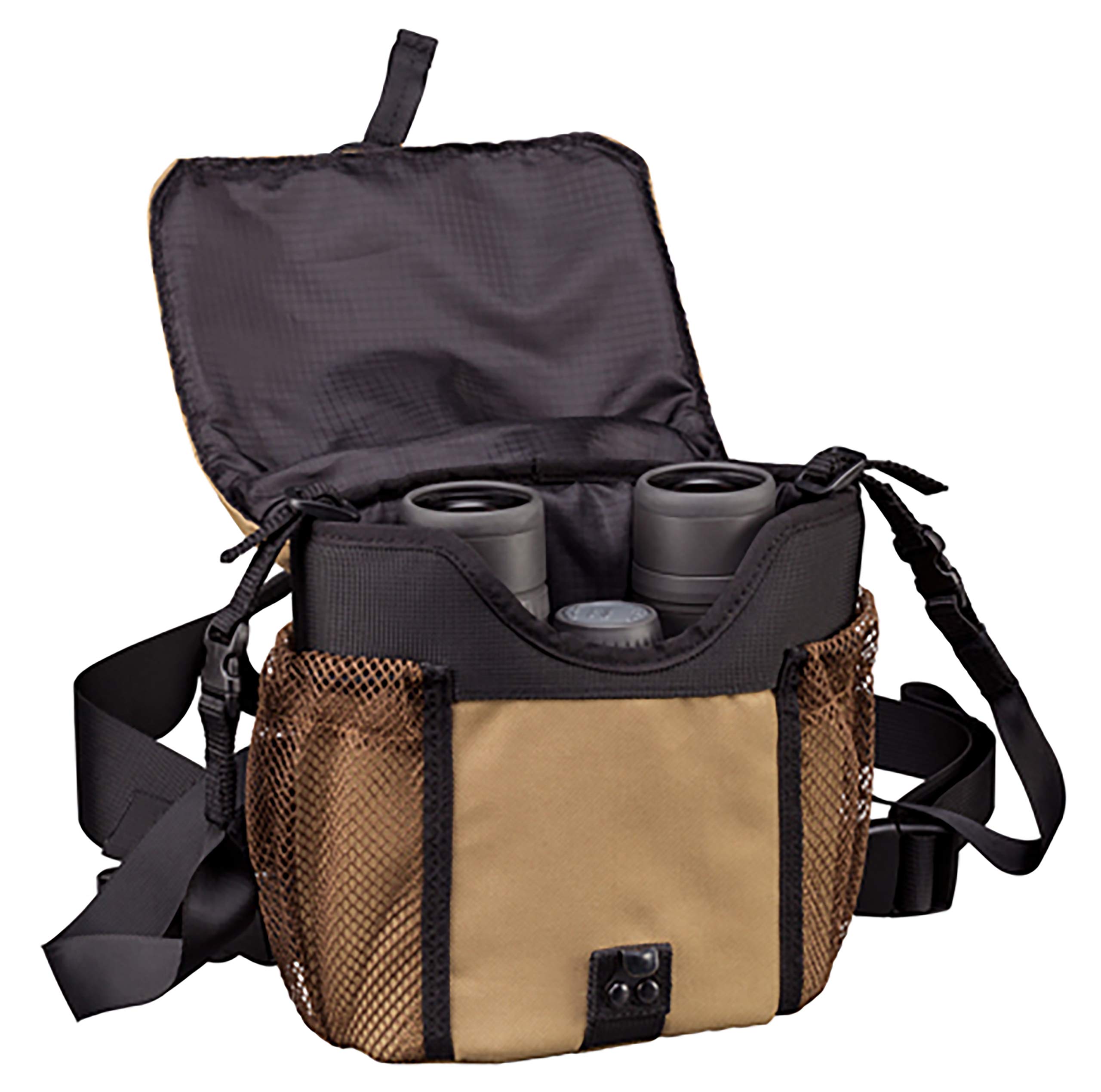 Details: Housing your binoculars and protecting them from the elements while keeping them close at hand is imperative when in the field. The Vortex GlassPak binocular harness will do just that. It accommodates a range of full size binoculars, yet keeps them snug and secure. The mesh side pockets hold calls, a lens pen, and other small items needing quick access. Tethers attach to your binocular preventing accidental drops, and the rear zippered pocket holds larger items such as a cell phone.