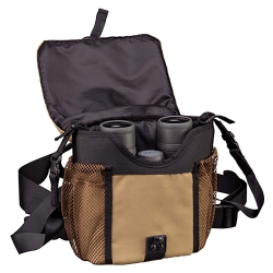 - It accommodates a range of full size binoculars, yet keeps them snug and secure. The mesh side pockets holds calls, a lens pen, and other small items needing quick-access convenience.